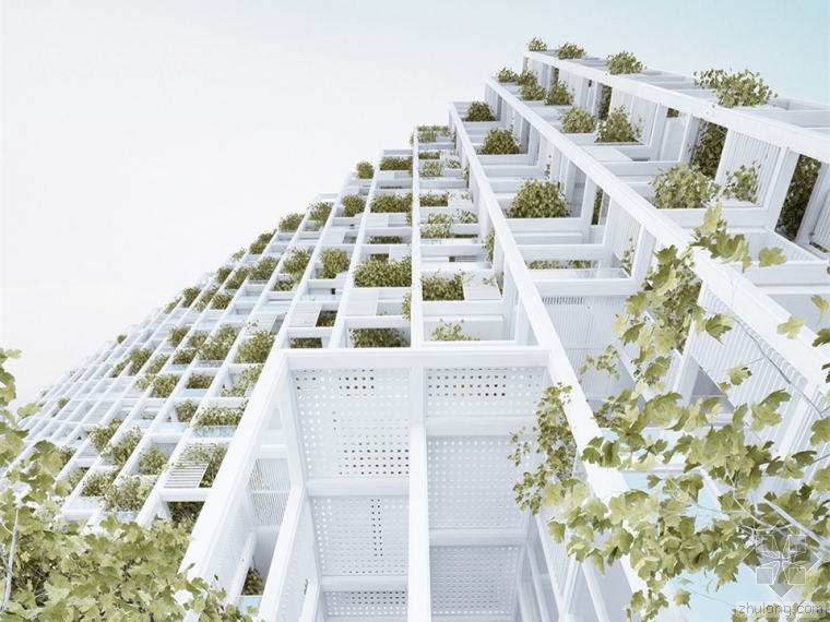 penda首先将一栋建筑中的必要元素——结构、墙体、外立面、天花、地面、基础设施、阳台和景观等要素从传统的整体思维中分解出来。然后从一个??榛母窆瓜低郴竦昧楦?,在新的格构系统中只有网格结构和基础设施是固定的部分。而其他的要素都可以通过工厂预制进行模块化加工。这些模块可以为客户提供一份目录,业主可从产品目录中选取这些??椤D?榉段Оú煌牡孛娴ピ?、外立面单元、栏杆阳台以及供植物生长的丰富多样的花盆等??突Э梢匀我庋≡穹纤亲约浩肺坏脑亟写钆?。penda希望为业主提供的是一个工具,使他们成为自己公寓的设计者。