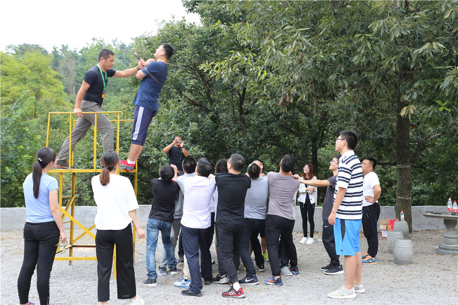 信任背摔,建立信任,勇于挑战,提升自己。