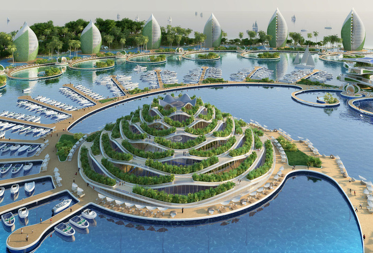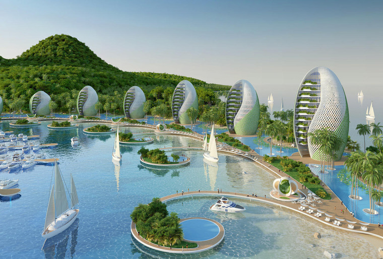度假村广泛使用“从源头到源头”的再利用方略和其他可持续设计策略,将本次方案设计成一系列螺旋形式的公寓楼和贝壳状的旅馆建筑,并将这些建筑按照两条斐波纳契螺线的旋转轨迹排布于沿?;方负陌侗?。建筑群的中心是一座山形的综合体,里面设置有学校、休闲游泳池、体育大厅、供度假村使用的厨房以及供环境科学家使用的整套实验室用房。本次方案起名为“鹦鹉螺生态度假村”,生态设计是本次项目的主要侧重点,Vincent Callebaut事务所精准地指出对菲律宾群岛构成的环境威胁并以此作为设计灵感。方案中运用了各种各样的可再生能源,包括潮汐能与太阳能,如果这些自产的能源在使用后还有结余,便会连接到地方电网并提供给社区。